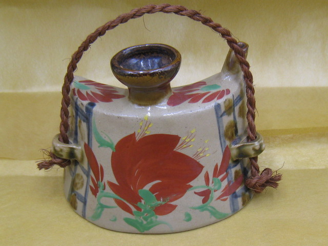 この唐樹は沖縄の壷屋焼の抱瓶です。有名な作家では人間国宝の金城次郎さんがおられます。魚紋や草花などを図柄にして沖縄独自の風情がある陶器ですね。実際は持ち運びができる携帯用の酒入れだとか。殆どは購入してコレクションケースに収めてある調度品が多いようです。泡盛を入れ、肩につるして使用する携帯用の酒瓶で、表面が曲線状の三日月形と、表側を三つに面取りした面取り形とがあります。構造は先端に注口、上部中央に泡盛入り口、外面に続く両側にひもを通す耳があり、酒器全体が曲線を持って腰に密着するように湾曲しています。写真の抱瓶も同様でなんだか可愛らしい形をしていますね。全体が赤や緑、青などで彩色されたり、絵が彫り込まれたり、近年は美術品としての価値も高まってきているようです。この抱瓶の分布は首里や那覇には少なく、反対に地方に多いことから、昔は豪農たちが山野の巡回や猟、花見、観月、競馬、古武道観戦などへ行くときに携帯したそうです。やむちんの歴史は琉球王府が編纂(へんさん)した歴史書「球陽」によれば、琉球王国が薩摩藩の侵攻を受けて支配下に置かれた17世紀初め、薩摩から招かれた3人の朝鮮人陶工が、湧田(わくた)村=現・那覇市泉崎=で製陶技法を伝えたのが始まりといいます。1682年には、点在していた窯場が牧志村=現・那覇市=のやきものの産地「壺屋」に集められました。以降、ここで生産される陶器は壺屋焼と呼ばれるようになります。